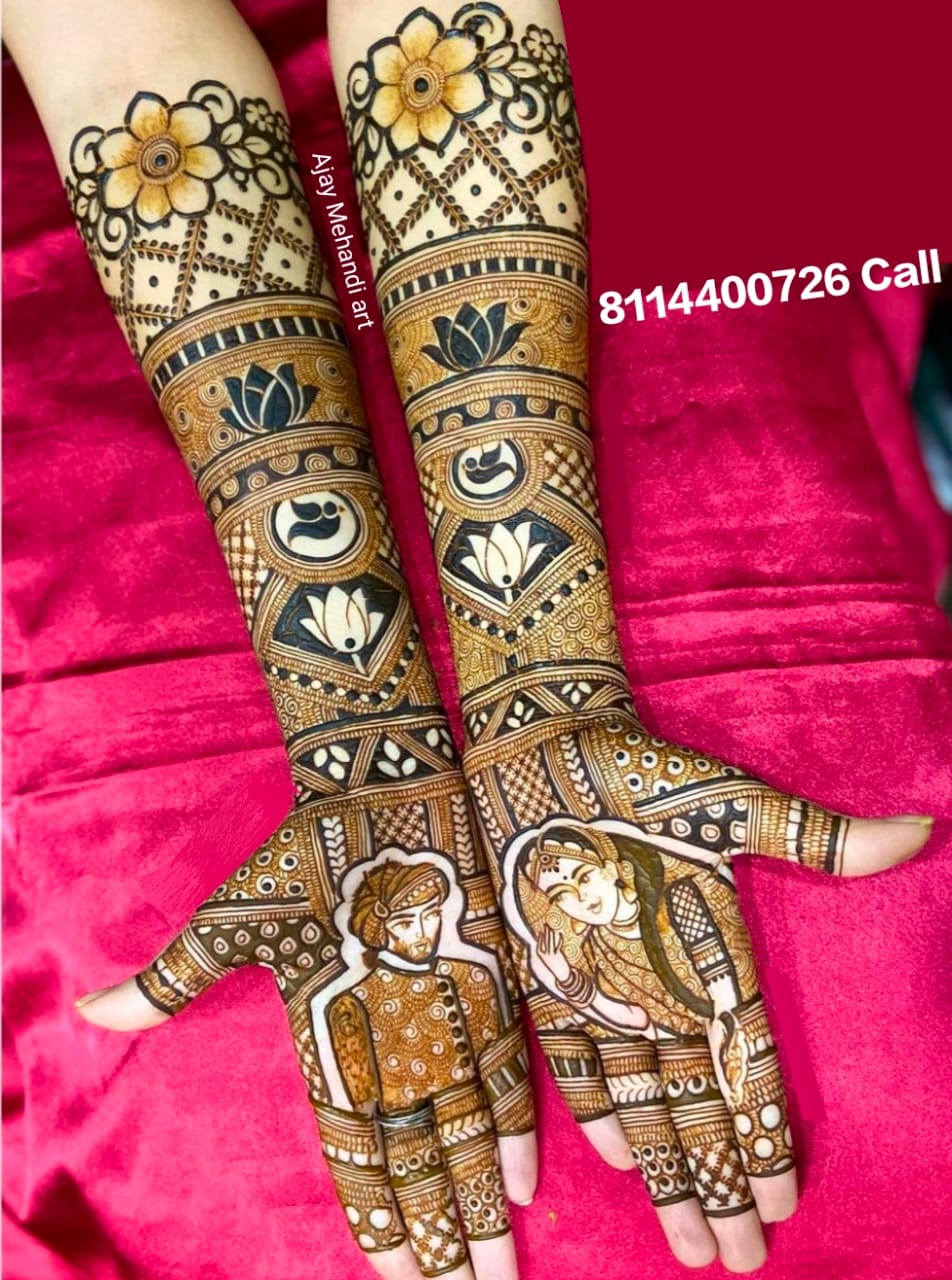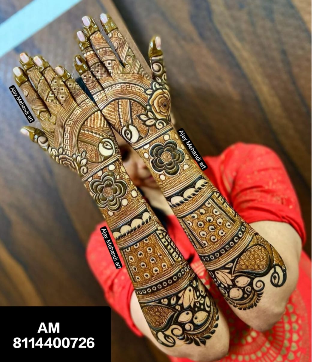 Our Bridal Mehndi designs are grand, intricate, and elegant — perfect for weddings. From detailed motifs on hands to beautiful artwork on feet, we ensure your bridal look is complete with timeless henna art. We use 100% natural henna, ensuring safe application and long-lasting deep color. Choose Ajay Mehendi Studio to make your special day unforgettable.
